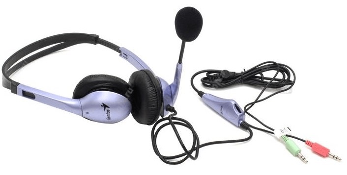 Гарнитура Genius HS-04S TWO Jack <черный+фиолетовы/регулятор громкости/105 дБ/2 х mini jack 3.5mm>